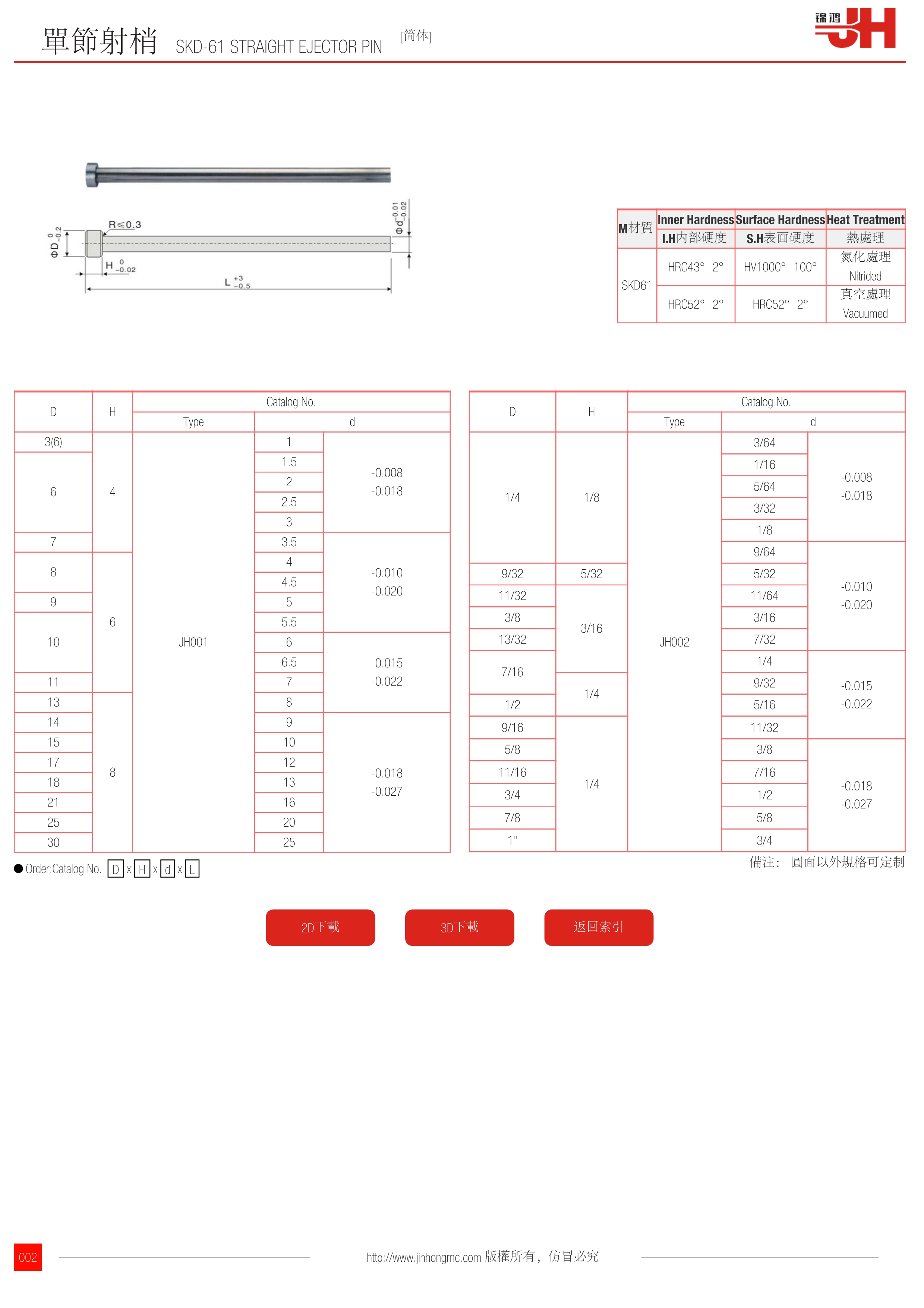 | 1/4 | 1/8 | JH002 | 3/64 | -0.018 -0.018 |