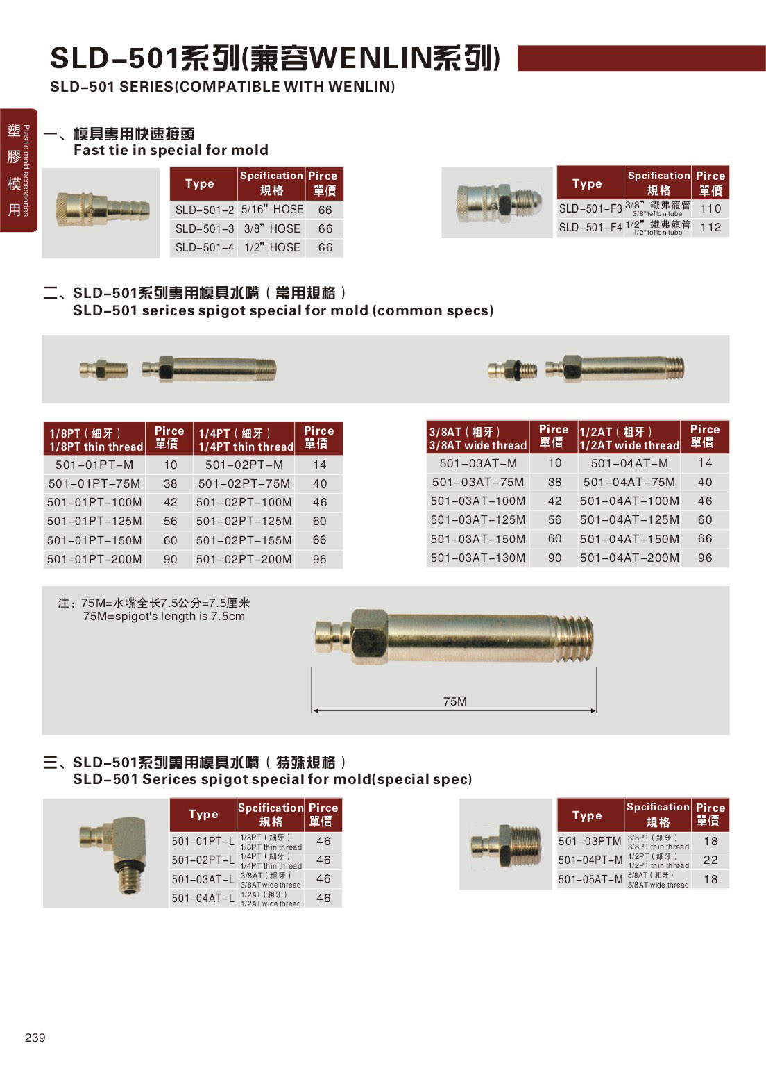 訂購:239-SLD-501系列(兼容WENLIN系列)_模具專用快速接頭