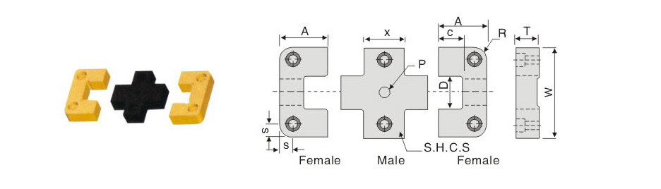 | W +.0000 -.0004 | T +.000 -.002 | X +.000 -.005 | A +.000 -.002 | C ±0.1 | D .0001/.0002 | R | S ±0.1 | P +.001 -.000 | 內六角螺場絲 internal hexagon screw S.H.C.S | |