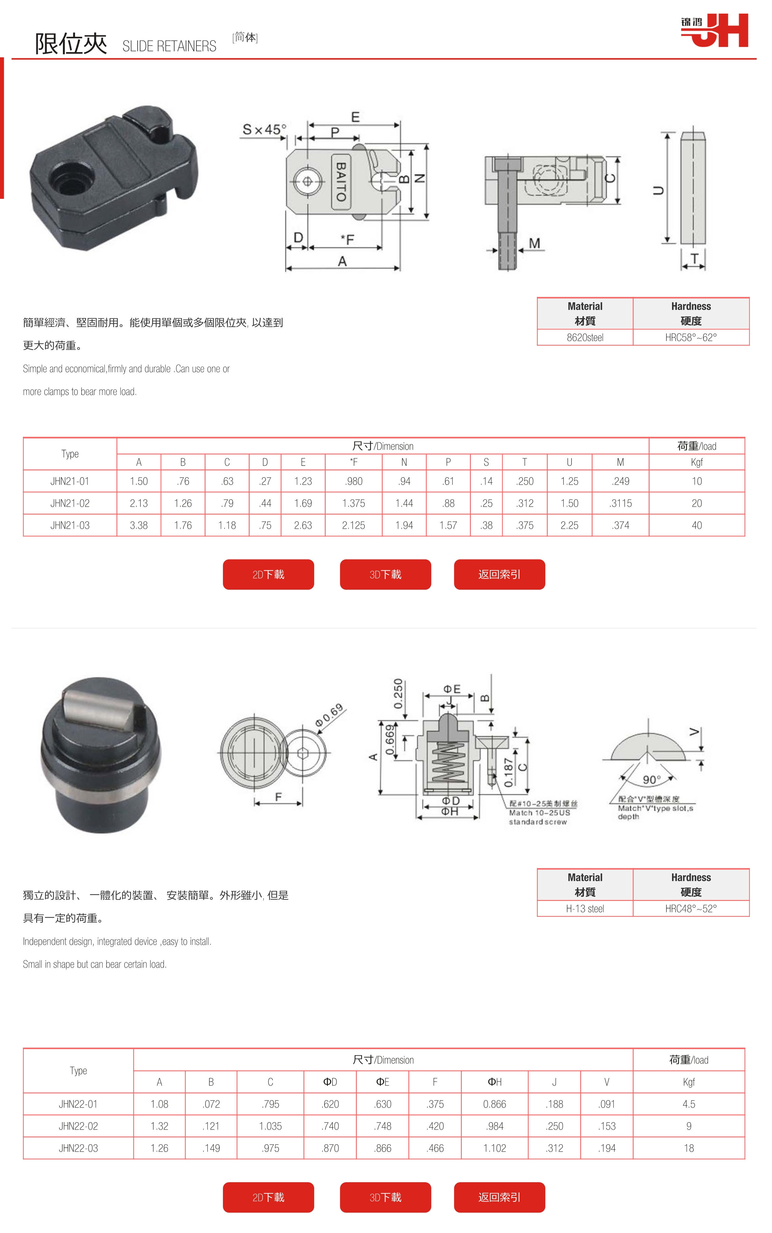 簡單經濟、堅固耐用。能使用單個或多個限位夾, 以達到
