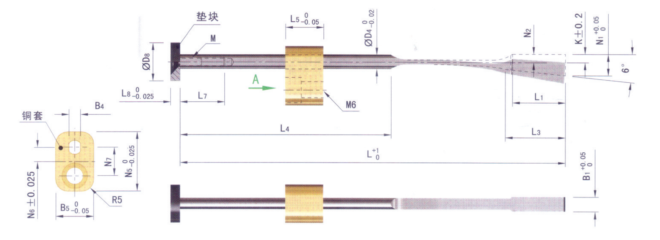 3.此款彈弓頂針?biāo)行吞柖寂溆袎|塊,銅套以及安裝螺絲;