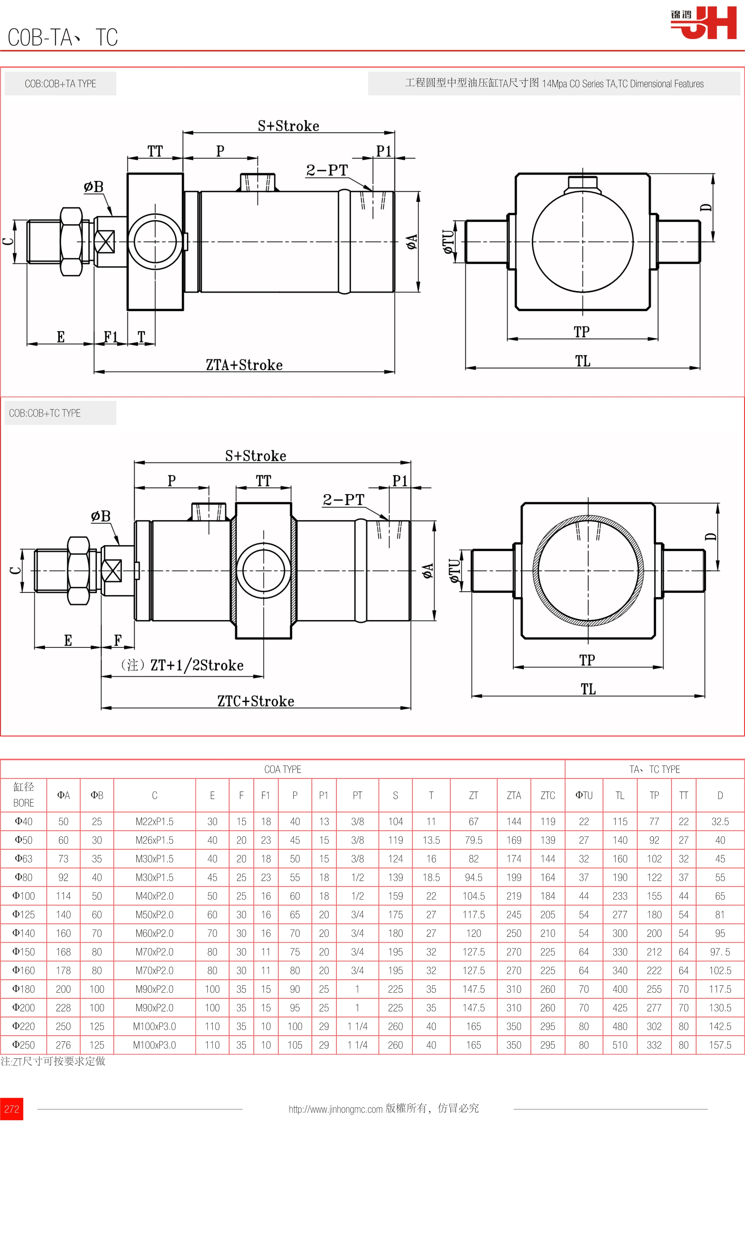 COB:COB+TA TYPE | 工程圓型中型油壓缸TA尺寸圖 14Mpa C0 Series TA,TC Dimensional Features |