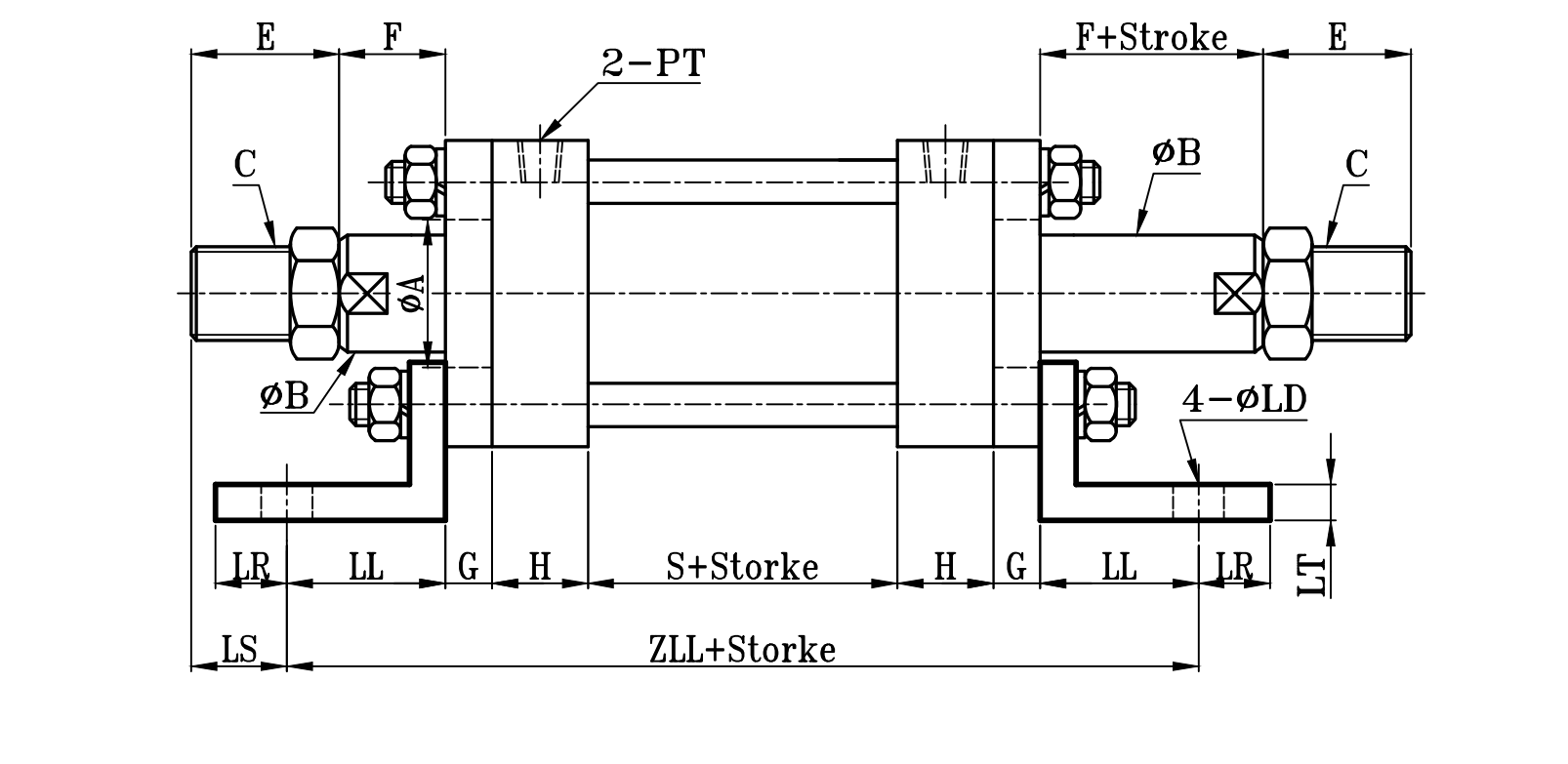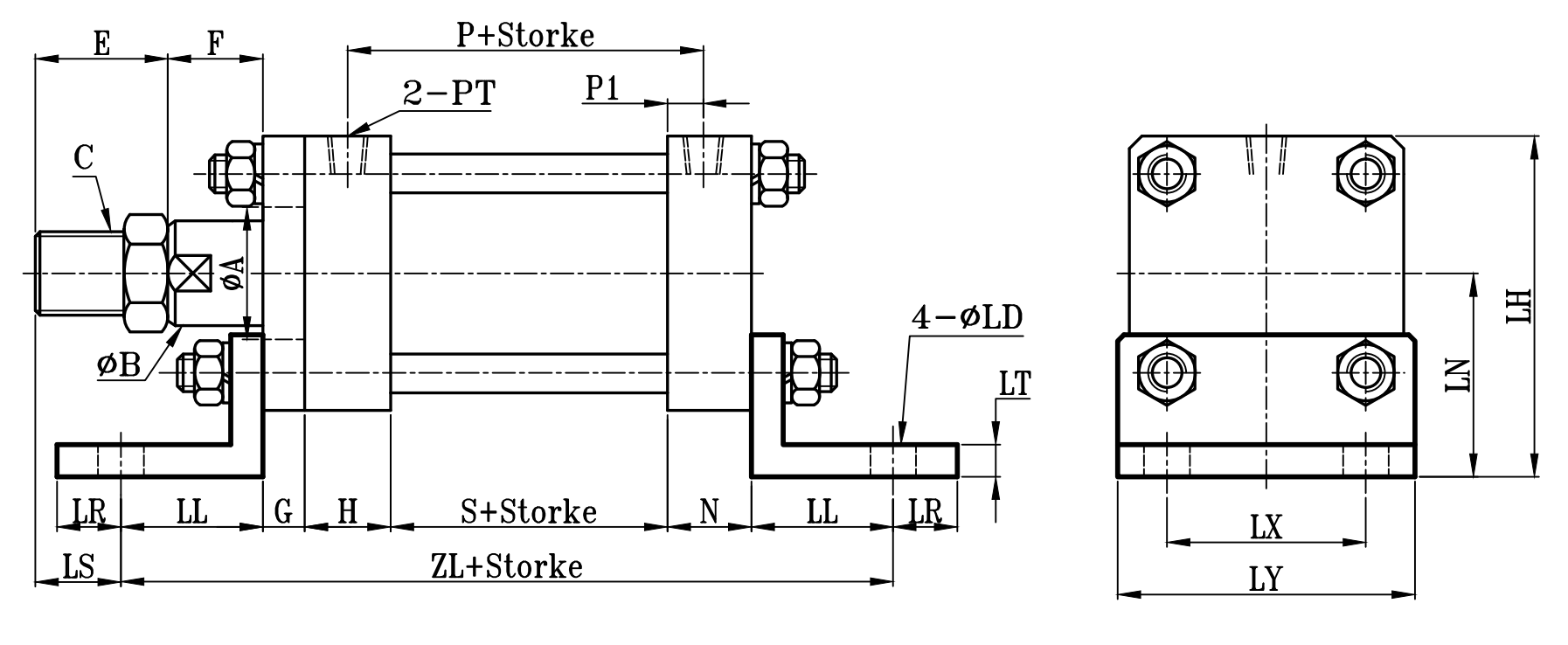 方型重型油壓缸LB架尺寸圖 14Mpa Hydraulic Cylinders LB Dimensional Features