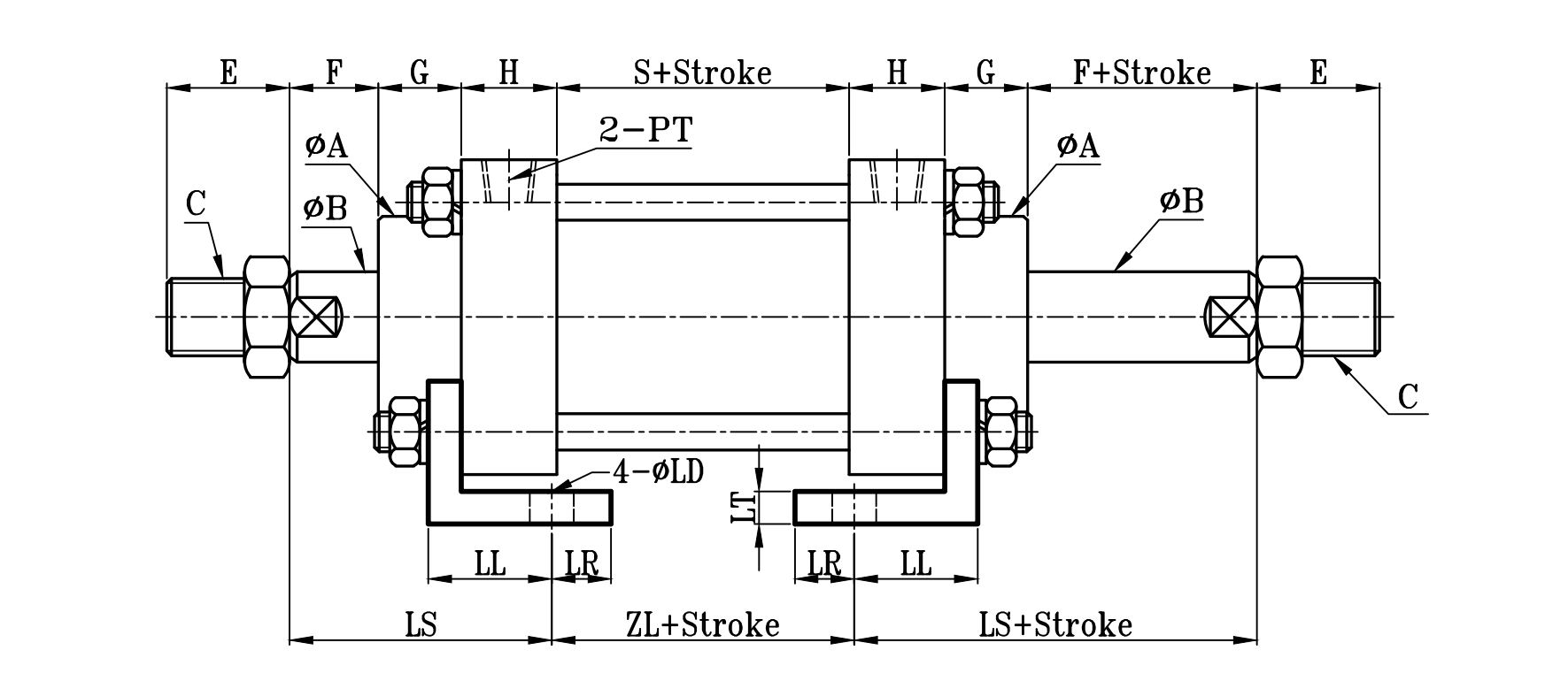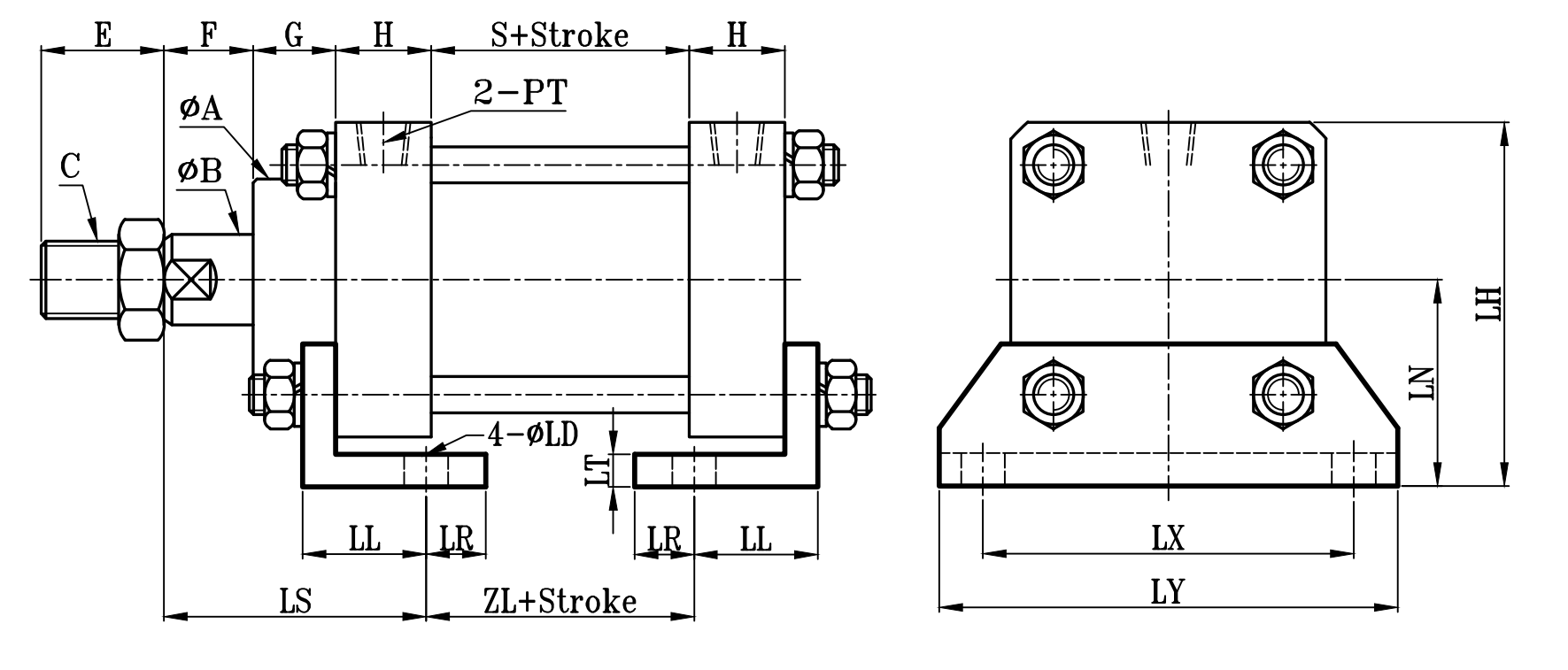 方型輕油油壓缸LAA架尺寸圖 7Mpa Hydraulic Cylinders LAA Dimensional Features