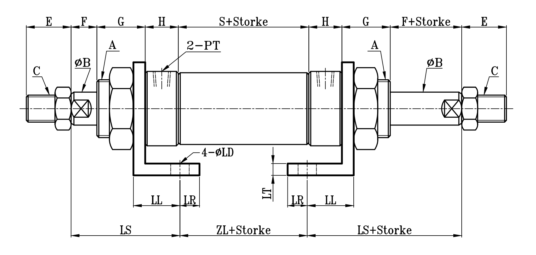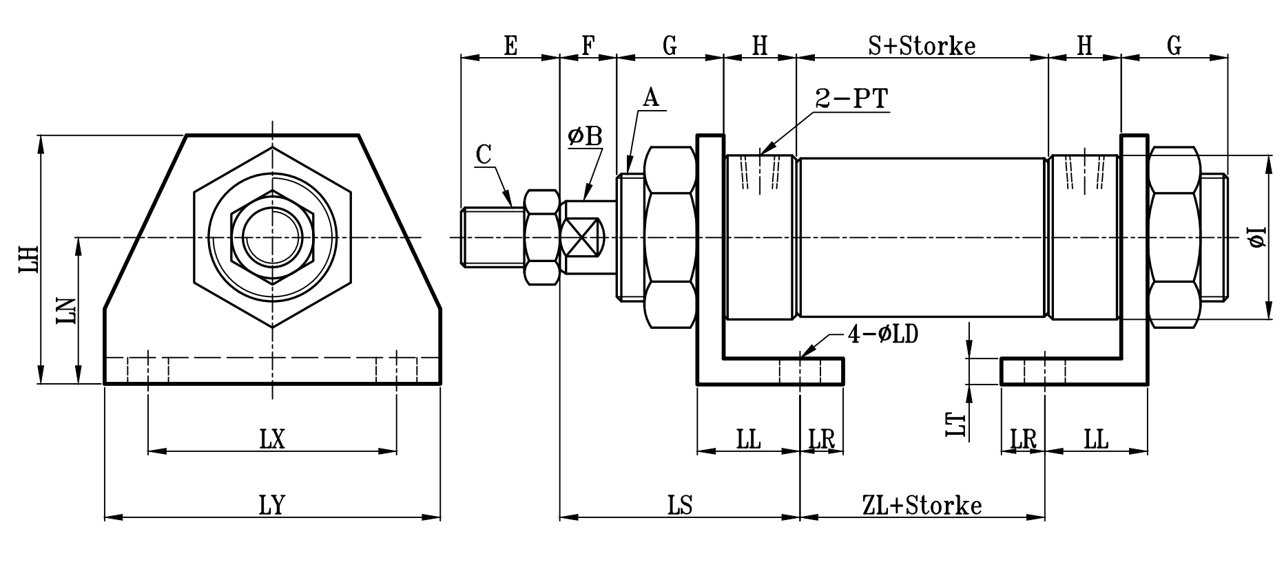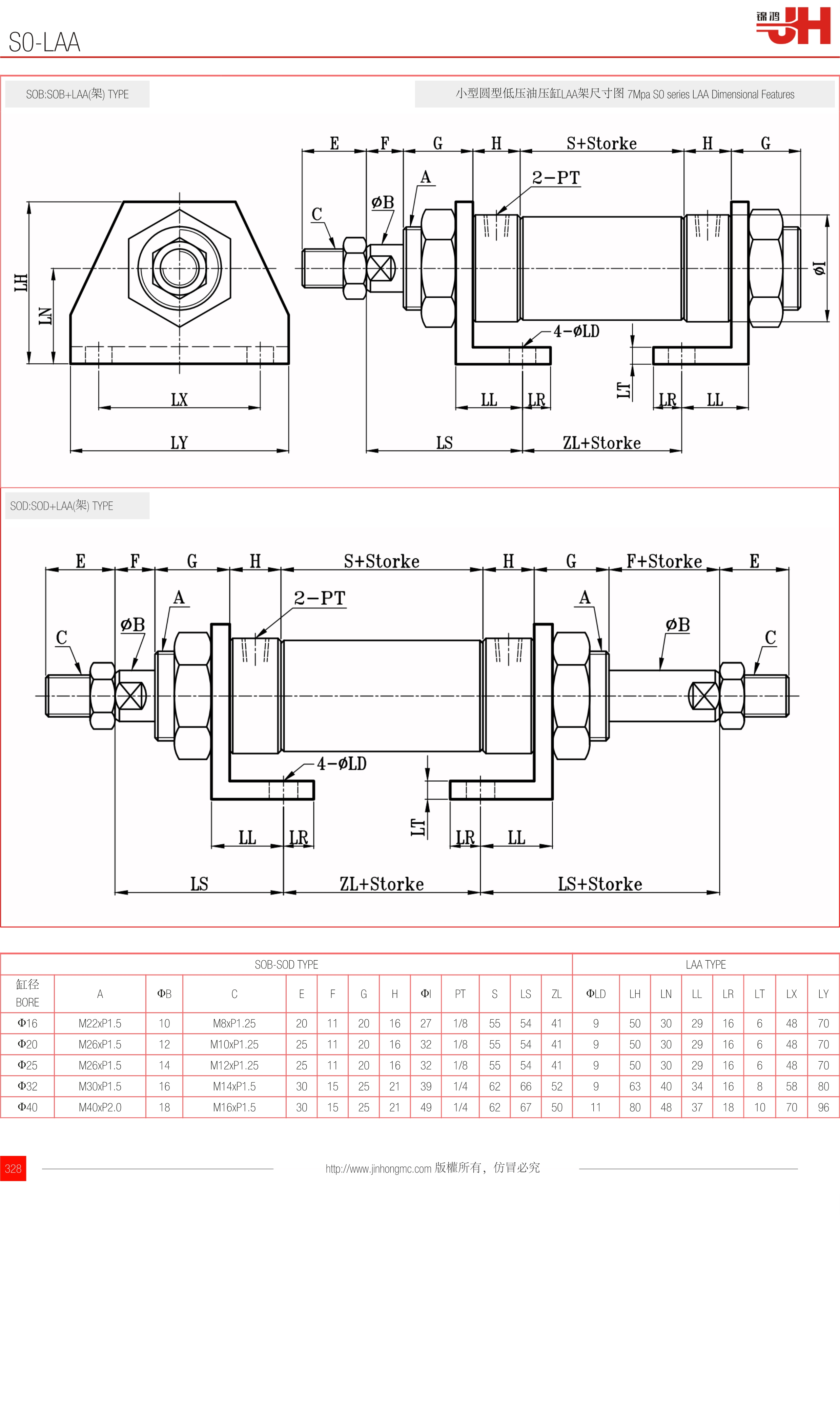 小型圓型低壓油壓缸LAA架尺寸圖 7Mpa S0 series LAA Dimensional Features