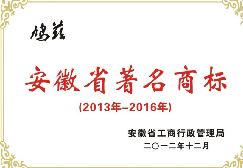 如今“鳩茲”迎來了一頂桂冠-安徽省著名商標。此項殊榮對于安徽環瑞品牌市場附加值、社會效益,以及文化影響力,被消費者認知,市場知名度、產品質量等多指標的肯定。其中關于產品質量政府規定只有產品質量要達到雙優,公司質量、環境、安全管理達到國際標準,通過國家權威機構認證認可才能評定符合著名商標。