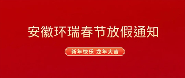 春節假期將至,安徽環瑞全體員工在這里提前給您拜個早年,祝您新春快樂,龍騰四海,宏圖大展!