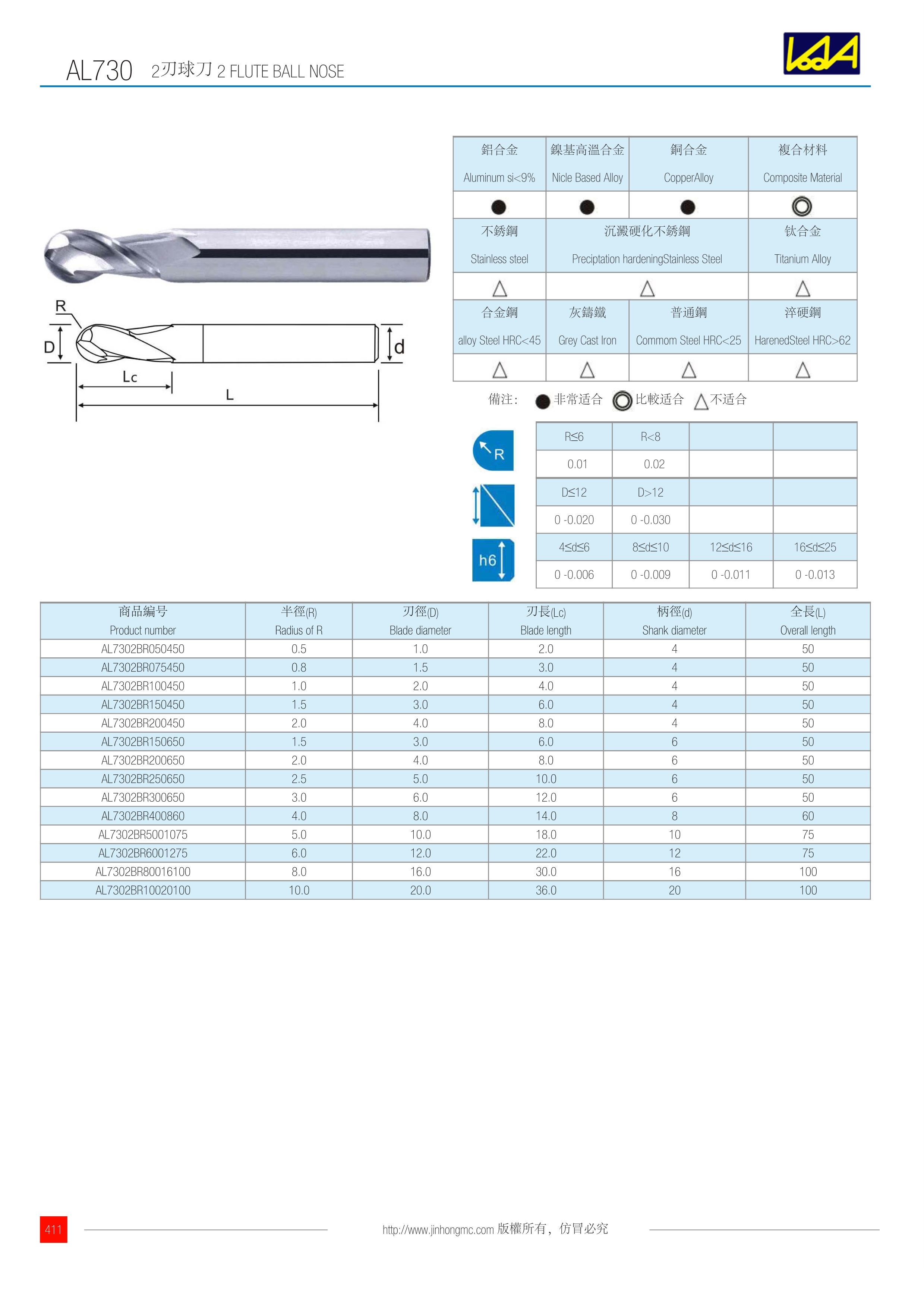 | 商品編號(hào) Product number | 半徑(R) Radius of R | 刃徑(D) Blade diameter | 刃長(zhǎng)(Lc) Blade length | 柄徑(d) Shank diameter | 全長(zhǎng)(L) Overall length |