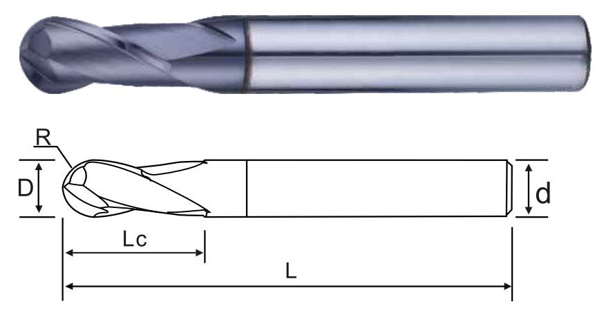 | 商品編號 Product number | 半徑(R) Radius of R | 刃徑(D) Blade diameter | 刃長(Lc) Blade length | 柄徑(d) Shank diameter | 全長(L) Overall length | 刃數(shù) Flute |