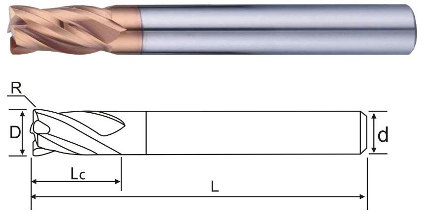 | 商品編號 Product number | 刃徑(D) Blade diameter | R角 R angle | 刃長(Lc) Blade length | 柄徑(d) Shank diameter | 全長(L) Overall length | 刃數(shù) Flute |