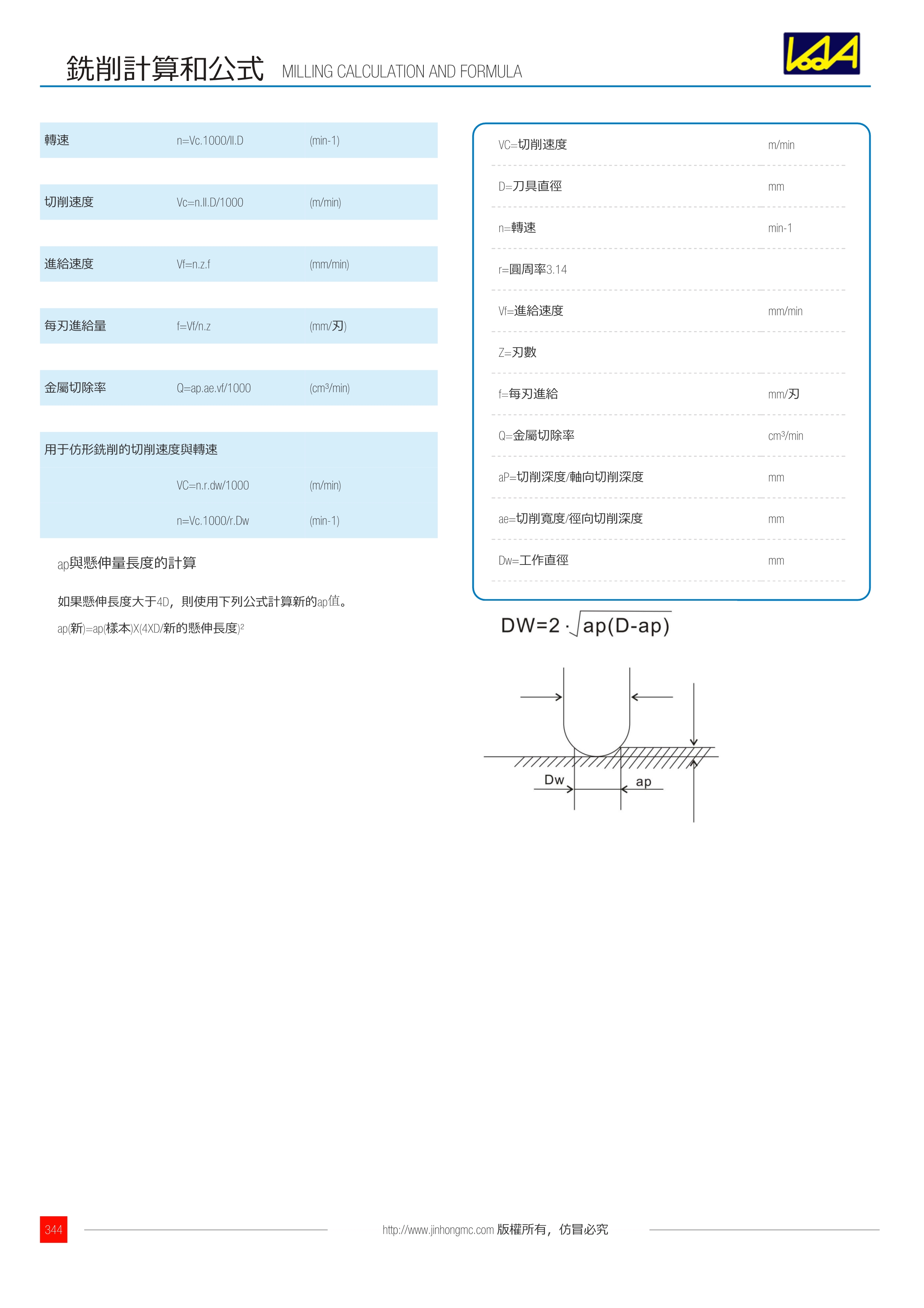 | 金屬切除率 | Q=ap.ae.vf/1000 | (cm3/min) |