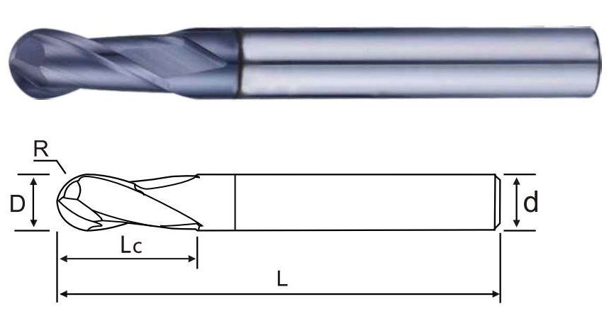 | 商品編號(hào) Product number | 半徑(R) Radius of R | 刃徑(D) Blade diameter | 刃長(zhǎng)(Lc) Blade length | 柄徑(d) Shank diameter | 全長(zhǎng)(L) Overall length | 刃數(shù) Flute |